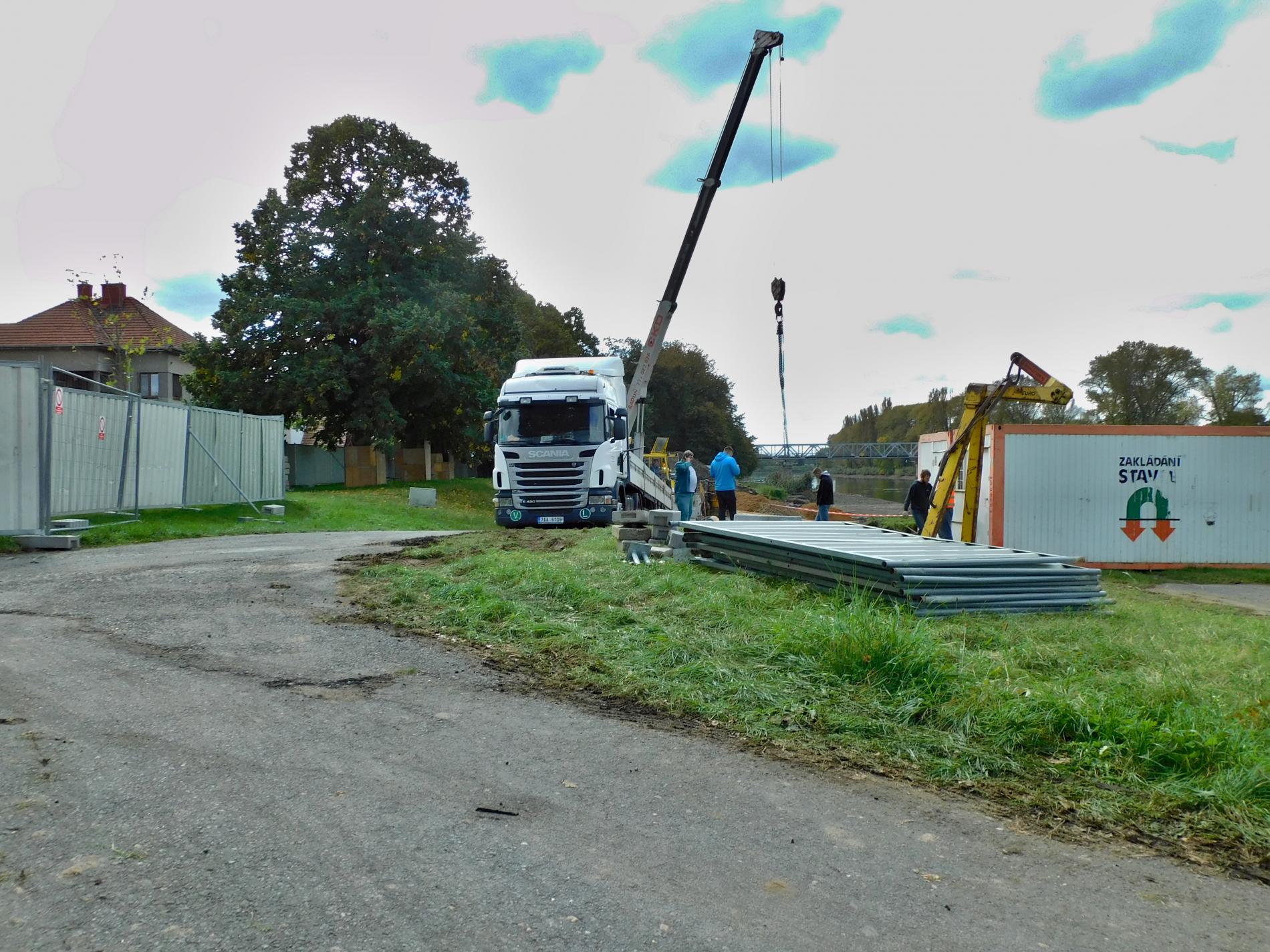 11/2020 – výstavba podpěr Lávky na březích Labe