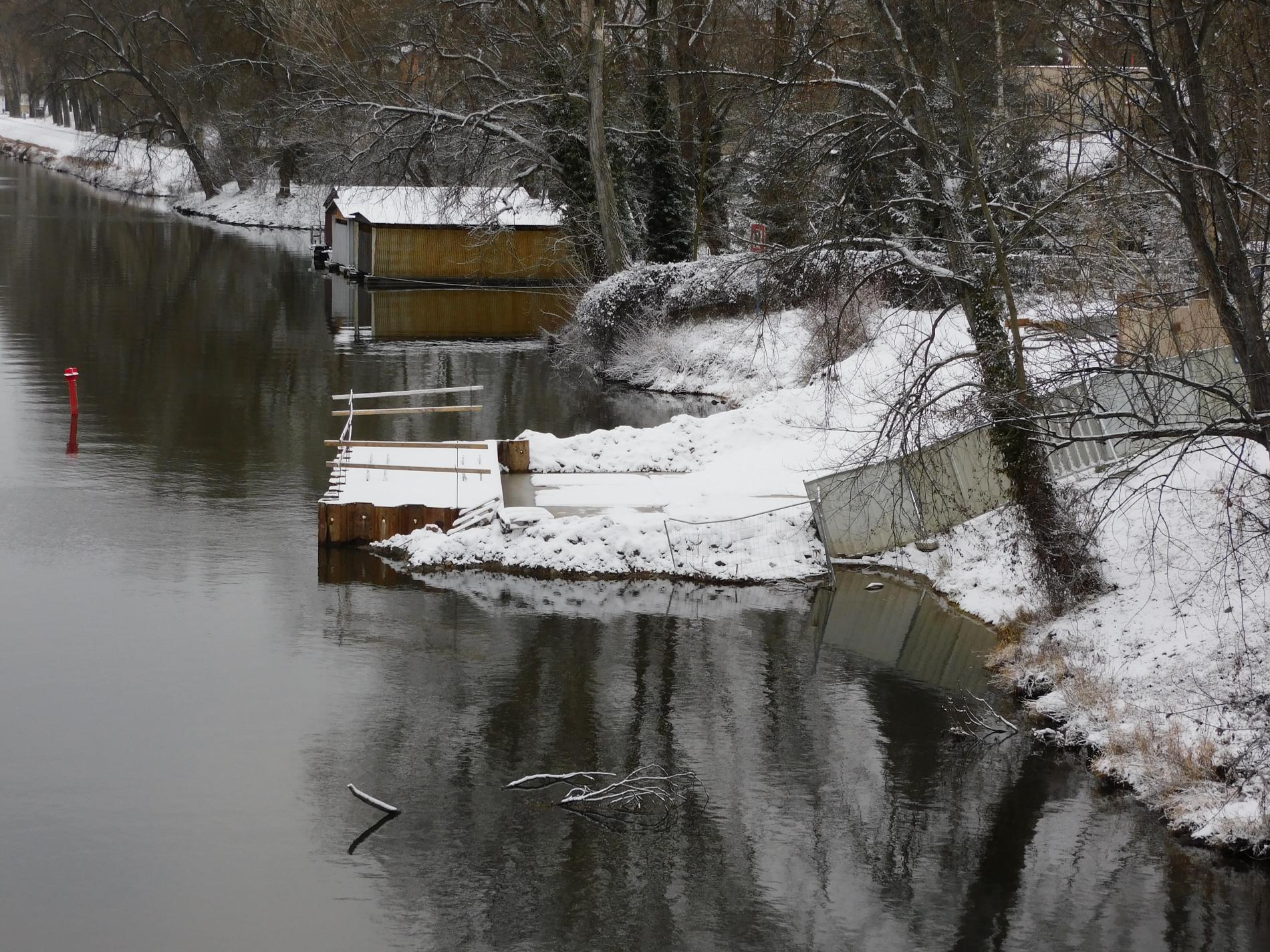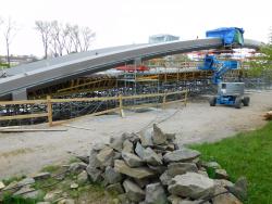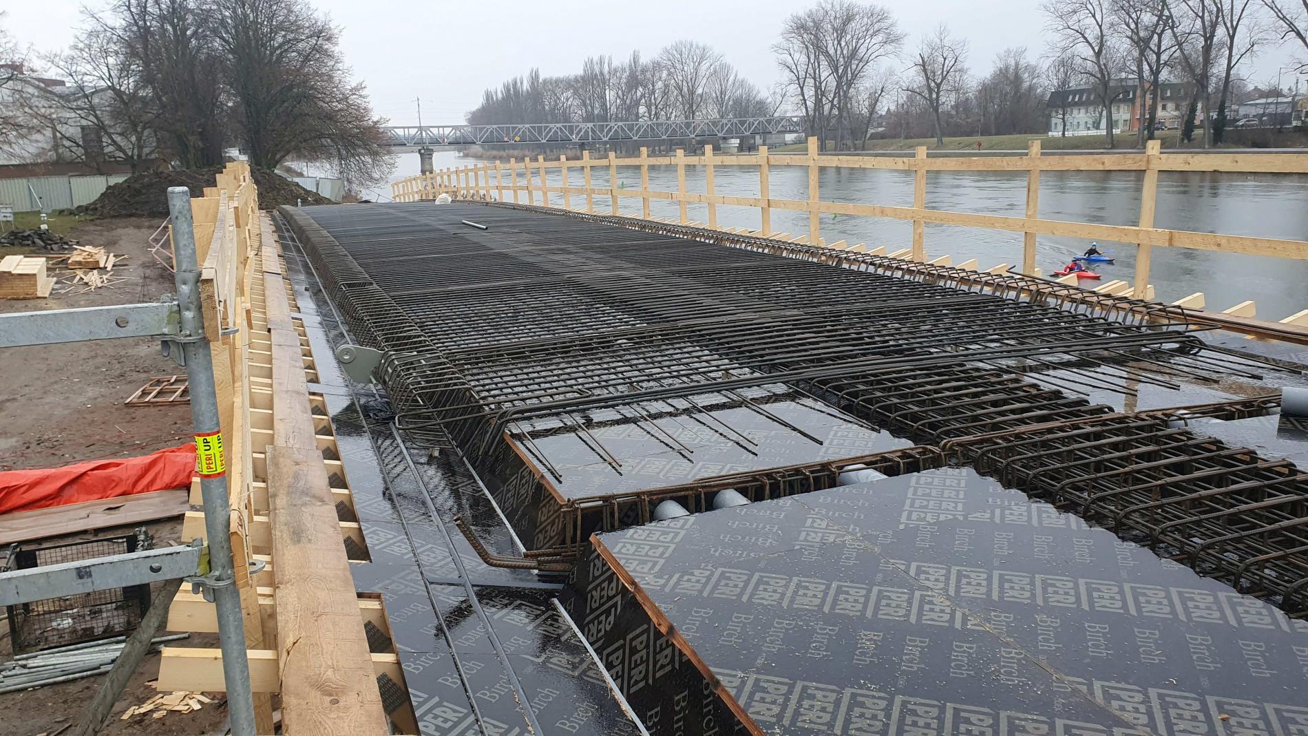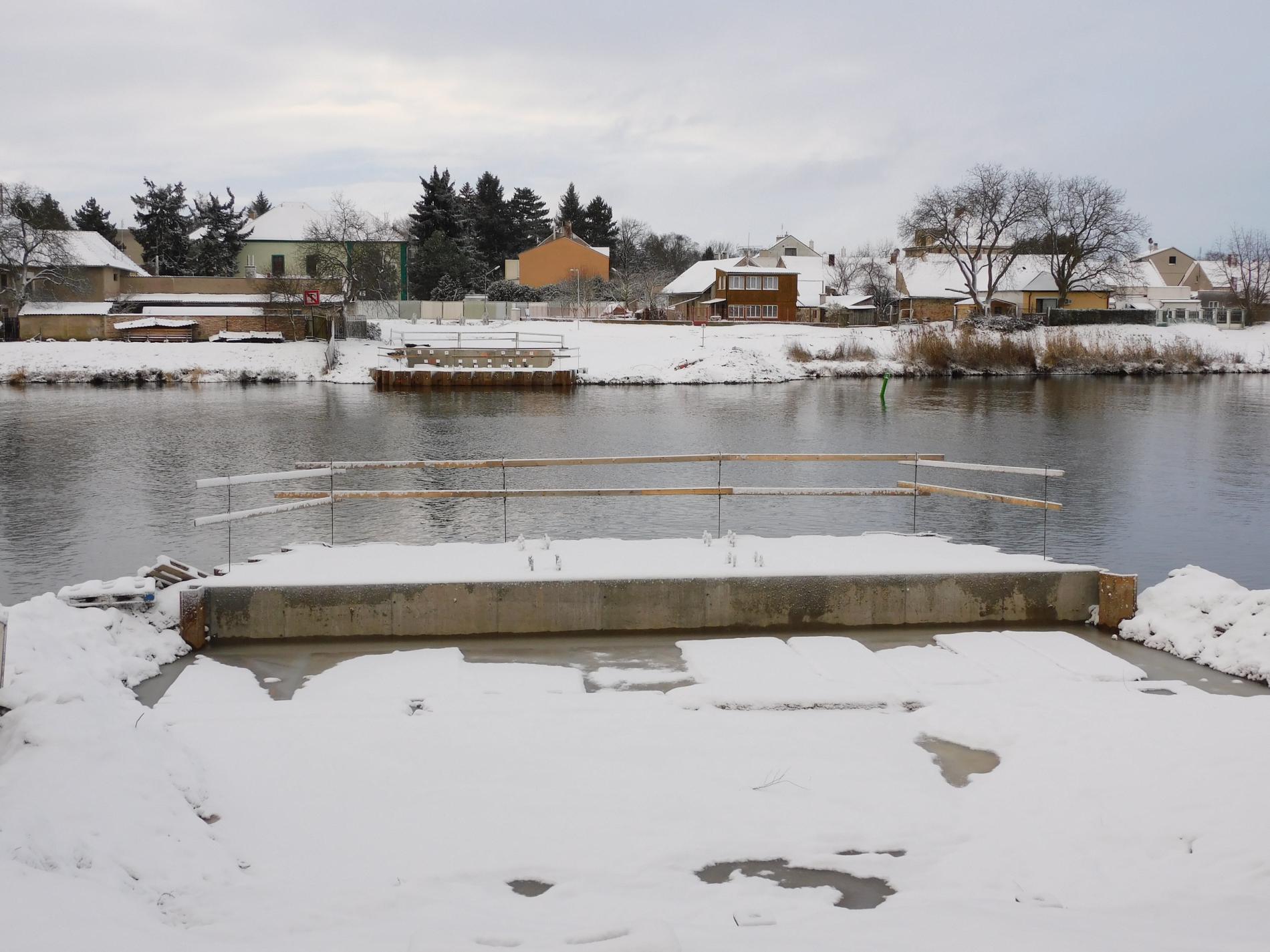 12/2020 – dokončení výstavby podpěr Lávky na březích Labe, příprava rampy pro montáž oblouků Lávky