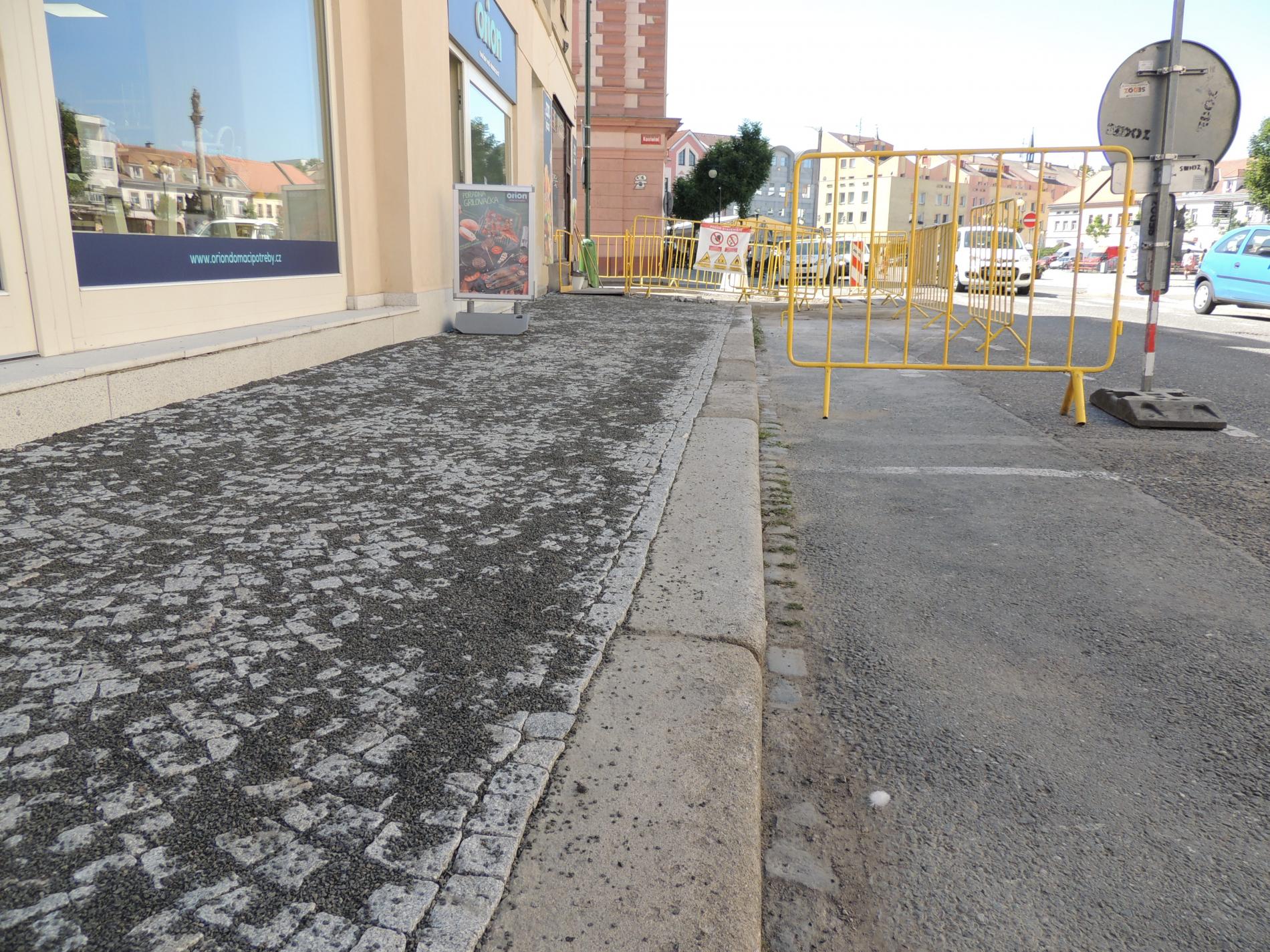 Vzhledem k požadavku na obousměrný průjezd cyklistů Palackého třidou byla tato možnost prověřena a v dané jednosměrce byl navrhnout protisměrný provoz cyklistů. Tato úprava bude provedena i v navazujícím úseku Palackého třídy od ulice Na Rejdišti po ulici Jízdecká. Živičné povrchy chodníků budou odstraněny a nahrazeny žulovou mozaikou skládanou do řádků.