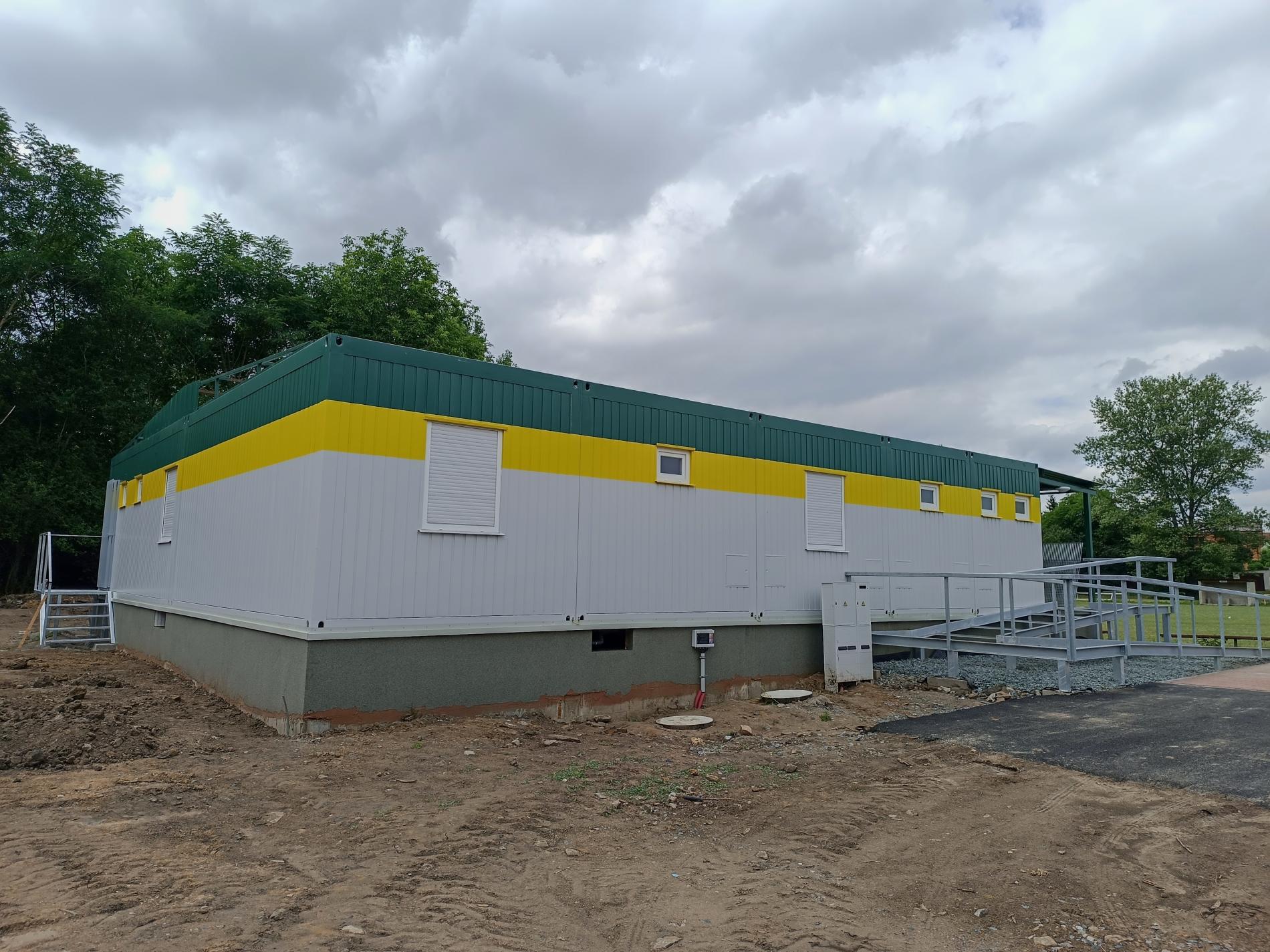 Výstavba fotbalových kabin v modulovém systému. Příprava podkladů pro stavbu nových fotbalových kabin město zahájilo již před třemi lety (2020) a po úpravách projektu konečně dojde k realizaci. Staré, nevyhovující šatny, sprchy a toalety pro sportovce i mládež budou nahrazeny moderním, jednopodlažním kontejnerovým – modulovým objektem, který bude zastřešen plechem. Stejný materiál bude použit na plášť objektu. Zástupcům TJ Sokol Drahelice bude mít úpravu vnějšího pláště v klubových barvách