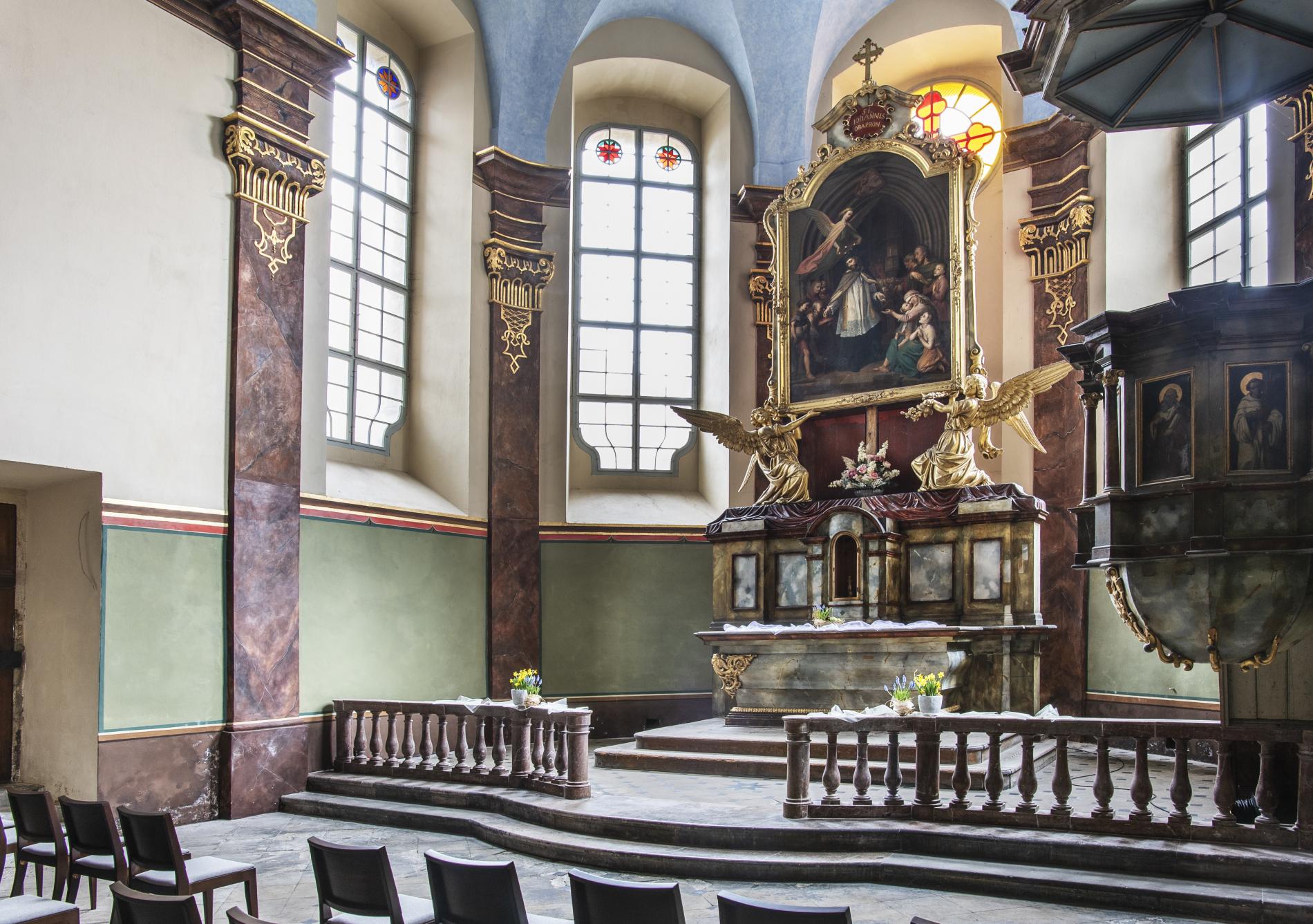 11/2018 – podpis smlouvy o dílo etapa II. - rekonstrukce interiéru - dokončení statického zajištění klenby (zabezpečení trhlin), průzkum barevnosti, opravy omítek stropu a repase vitrážových oken.