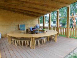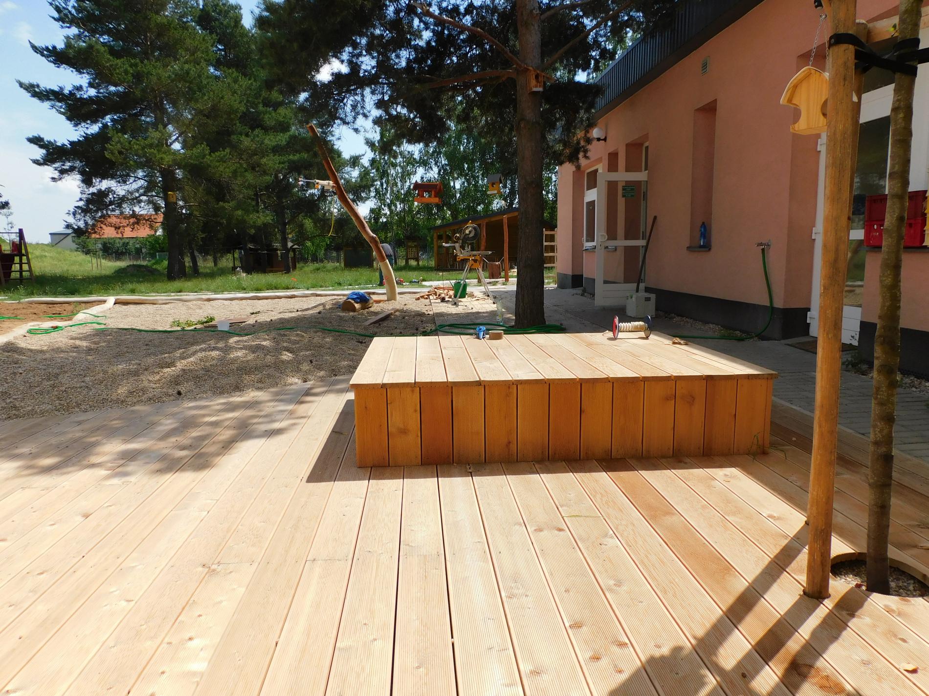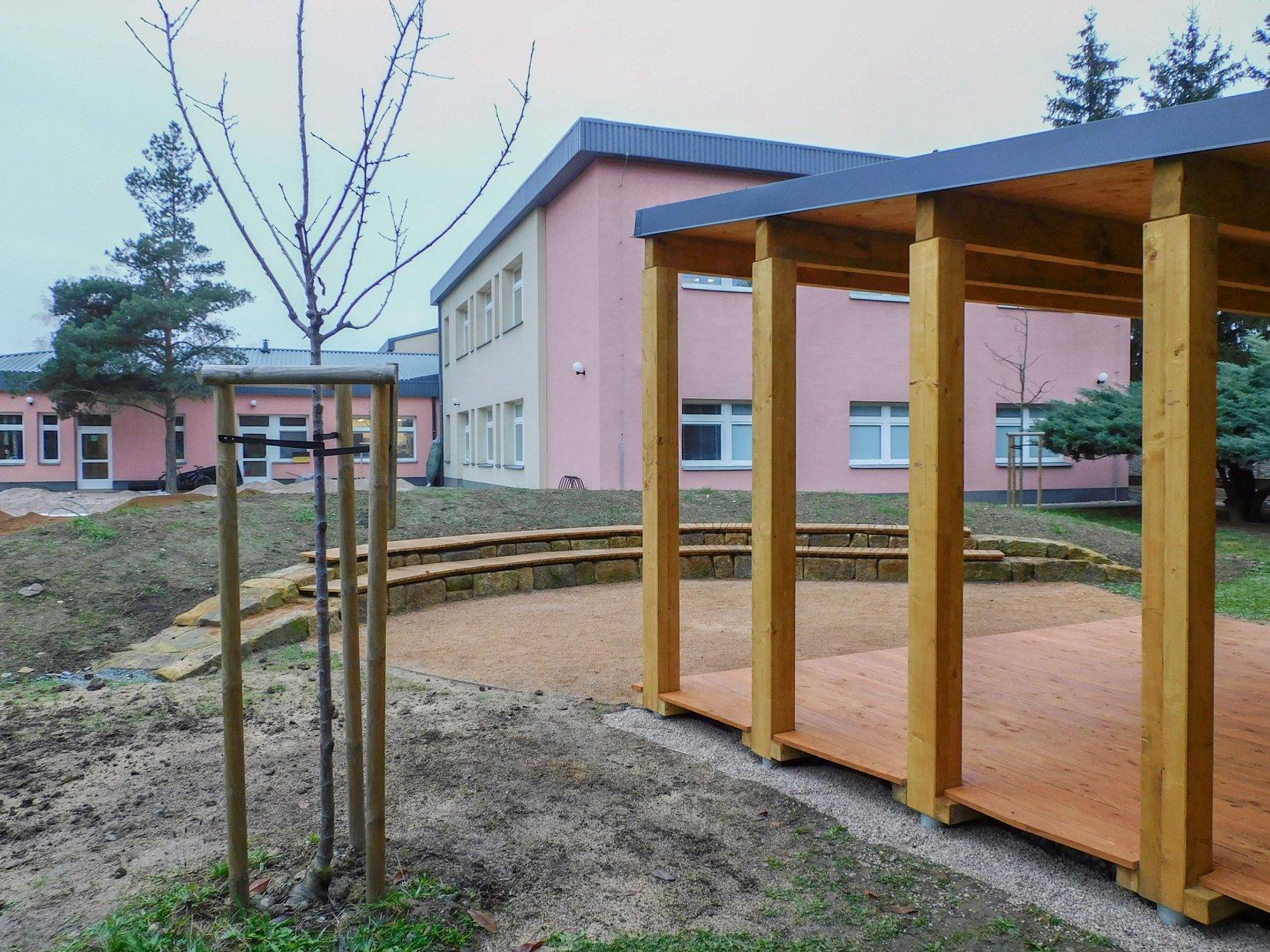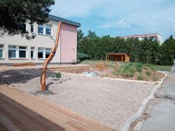 Součástí projektu jsou venkovní učebny, kryté podium, amfiteátr, hrací a vodní prvky i sadové úpravy. V rámci přípravy realizace město odkoupilo pozemky pod zahradou od soukromého majitele. Dalších 200 m2 připadlo školce zarovnáním a posunutím hranice pozemku v Okružní ulici.